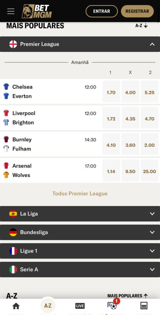 5.1 Apostas em Futebol na BetMGM