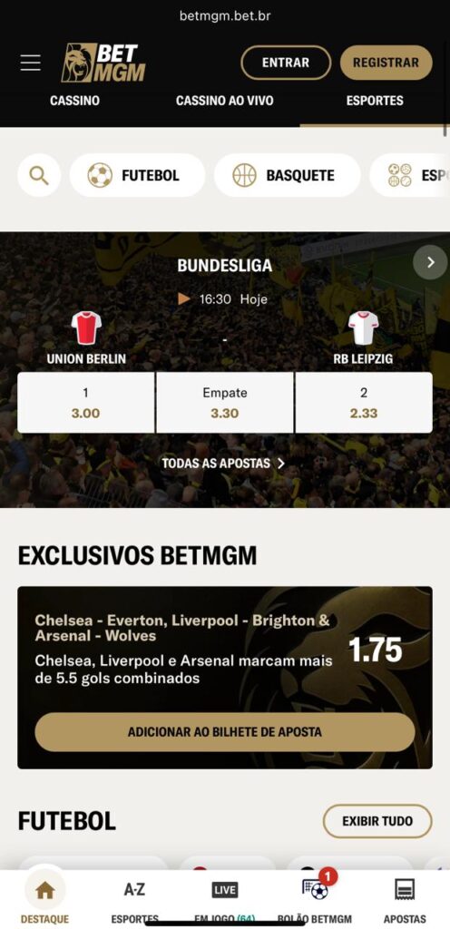 - Menu direto para BetMGM futebol e esportes