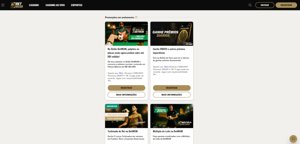 👉 Confira as promoções ativas da BetMGM Brasil e participe das campanhas exclusivas.