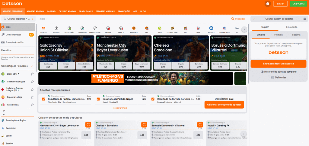 A seção de Betsson Futebol é uma das mais completas da plataforma — ideal para o apostador brasileiro.