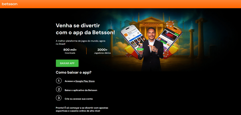 A performance é leve e estável — ideal para quem quer apostar em movimento. A Betsson só oferece o app para Android no momento.
