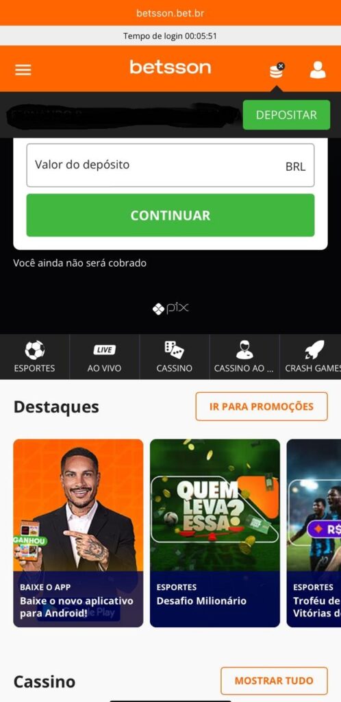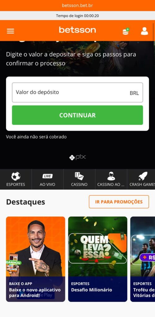 - As Casas de Apostas que seguem a regulamentação trabalham apenas com depósitos via Pix, o que não é diferente na Betsson;