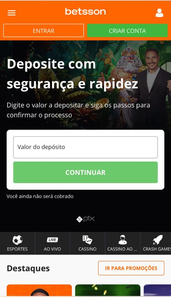 Pela legislação, o método de depósito das casas de apostas regulamentadas é o Pix, e na Betsson,o valor mínimo para pagamento é de R$10.