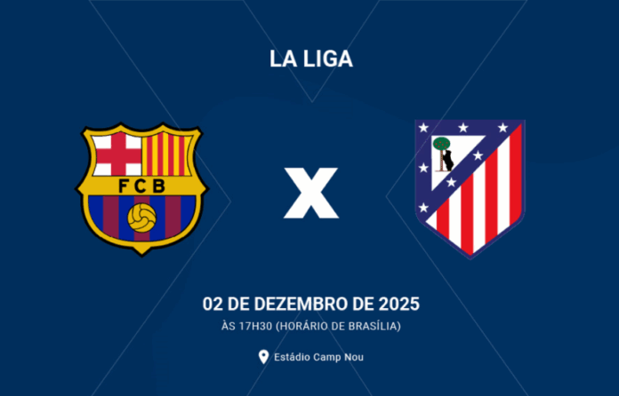 Barcelona e Atlético de Madrid se enfrentam em confronto válido pela 19º rodada de La Liga 2025/26. O jogo está marcado para o Estádio Camp Nou nesta terça-feira, 2 de dezembro, às 17h (Brasília). Confira onde assistir, prognóstico e a melhor aposta.