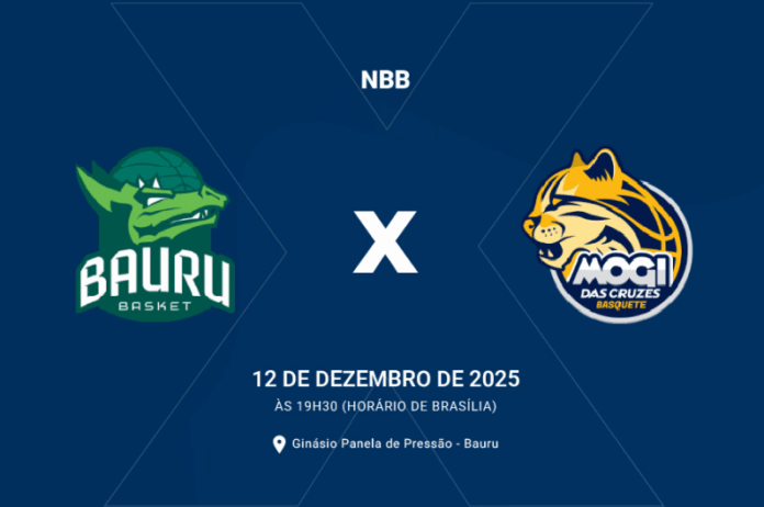 Bauru Basket e Mogi se enfrentam em confronto válido pela temporada regular do NBB 2025/26. O jogo está marcado para sexta-feira, 12 de dezembro, às 19h30 (Brasília), no Ginásio Panela de Pressão, em Bauru-SP. Confira onde assistir, prognóstico e a melhor aposta.