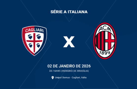 Cagliari e Milan se enfrentam pela 18º rodada do Campeonato Italiano 2025/26. O jogo está marcado para a sexta-feira, 2 de janeiro, às 16h45 (Brasília), no Unipol Domus.