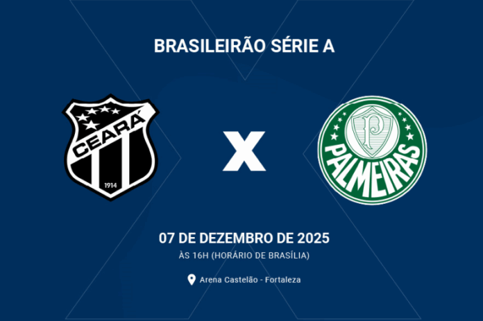 Ceará e Palmeiras se enfrentam em confronto válido pela 38º rodada do Campeonato Brasileiro da Série A de 2025. O jogo está marcado para domingo, 7 de dezembro, às 16h (Brasília), na Arena Castelão, em Fortaleza-CE. Confira onde assistir, prognóstico e a melhor aposta.