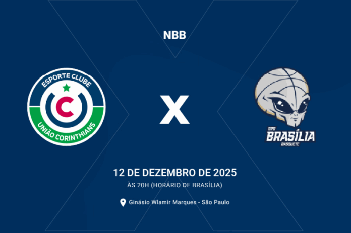 Corinthians e Brasília se enfrentam em confronto válido pelo primeiro turno do Novo Basquete Brasil (NBB) 2025/26. A partida está marcada para sexta-feira, 12 de dezembro, às 20h (Brasília), no Ginásio Wlamir Marques. Confira onde assistir, prognóstico e a melhor aposta para o jogo.