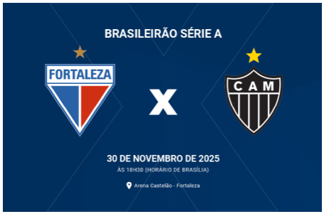 Fortaleza e Atlético Mineiro se enfrentam em confronto válido pela 35º rodada do Campeonato Brasileiro da Série A de 2025. O jogo está marcado para o domingo, 30 de novembro, às 18h30 (Brasília), na Arena Castelão. Confira onde assistir, prognóstico e a melhor aposta.