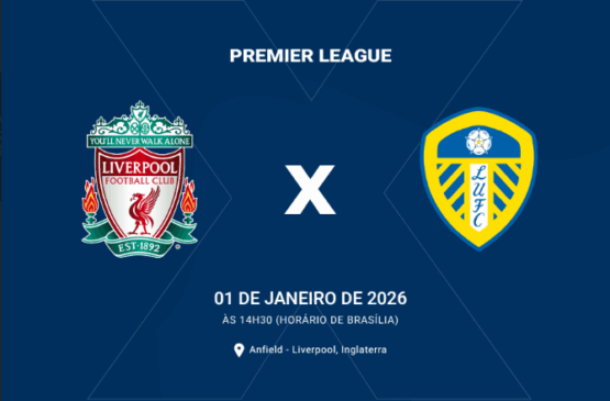 Liverpool e Leeds jogam nesta quinta-feira, 1º de janeiro, às 14h30 (Brasília), pela 19º rodada da Premier League 2025/26. A partida está marcada para o Estádio de Anfield, em Liverpool.