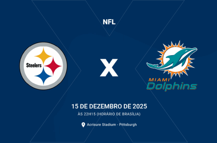 Na segunda-feira, 15 de dezembro, às 22h15 (Brasília), Pittsburgh Steelers e Miami Dolphins se enfrentam pela Semana 15 da NFL 2025. O confronto está marcado para o Acrisure Stadium. Confira onde assistir, prognóstico e a melhor aposta.