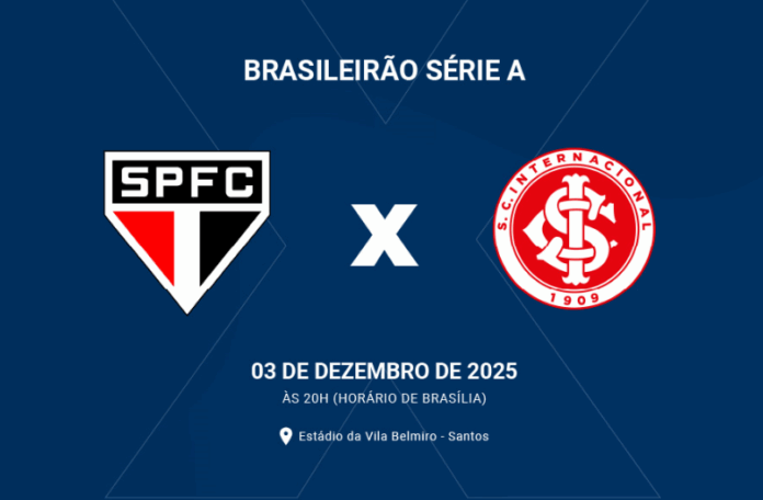 São Paulo e Internacional entram em campo pela 37º rodada do Campeonato Brasileiro da Série A de 2025. O jogo está marcado para a quarta-feira, 3 de dezembro, às 20h (Brasília), no Estádio da Vila Belmiro. Confira onde assistir, prognósticos e a melhor aposta.