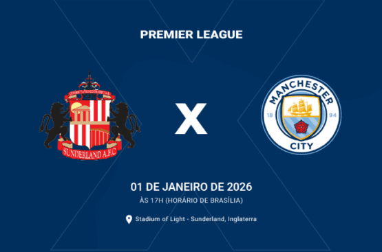 Sunderland e Manchester City se enfrentam na quinta-feira, 1º de janeiro de 2026, às 17h (Brasília), pela 19º rodada da Premier League 2025/26 no Stadium of Light.