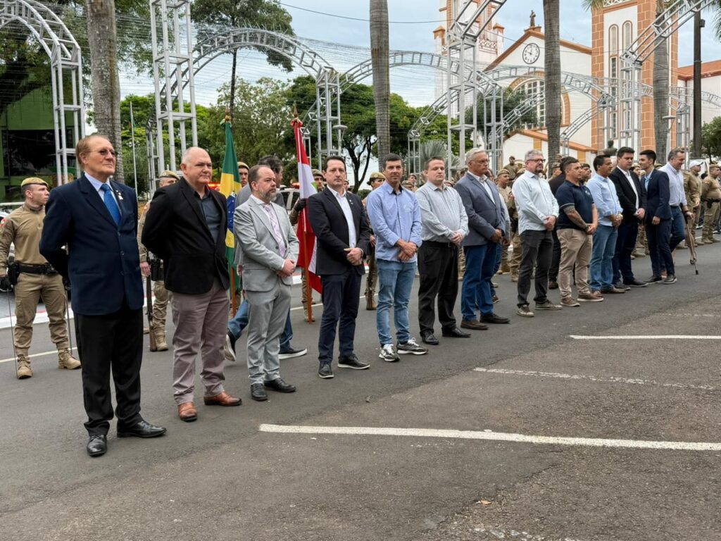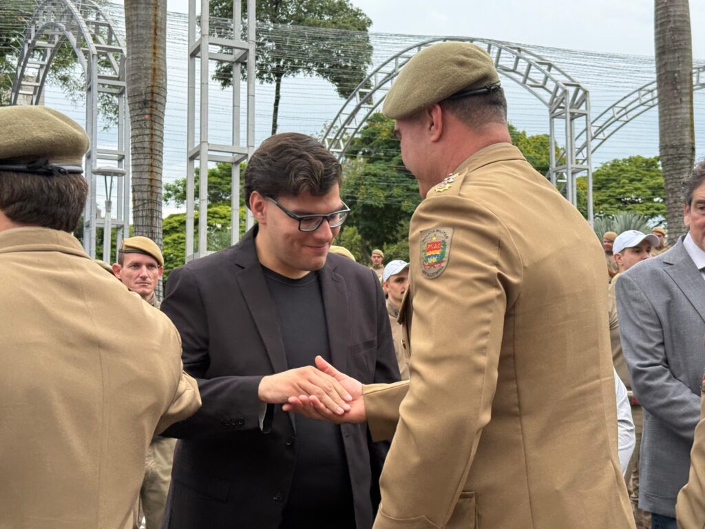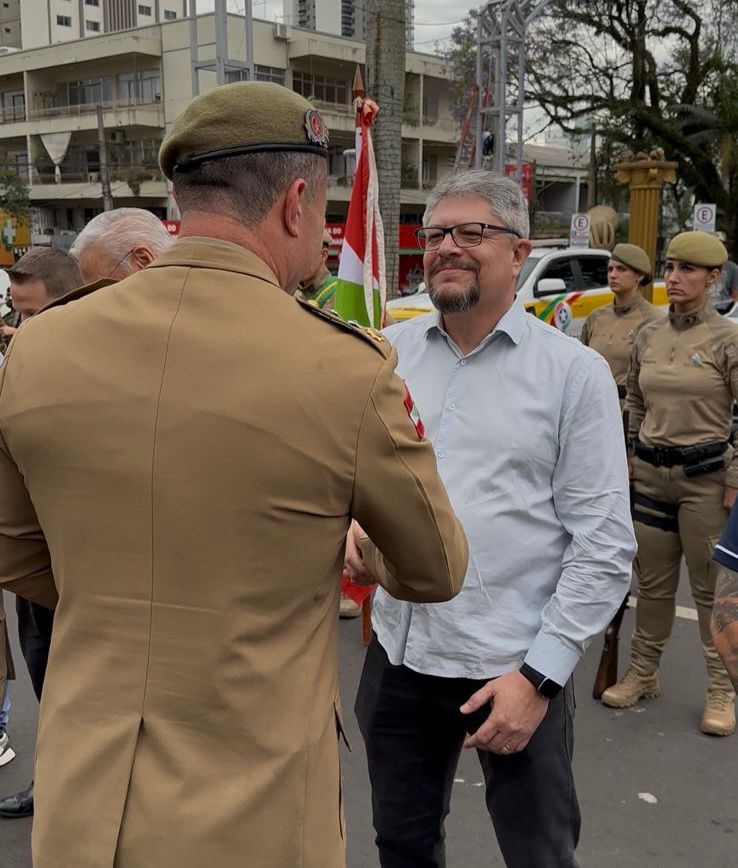 Nesta manhã, o ciclone extratropical previsto para aparecer no município de Chapecó-SC, teve que esperar. Pois, na Avenida Getúlio Vargas, aconteceu, ao ar livre, a Solenidade alusiva ao 22° aniversário do 4° Comando Regional de Polícia Militar de Fronteira. Um momento de homenagem aos amigos da polícia e reconhecimento aos oficiais pelo trabalho prestado. Entre os homenageados, estavam André de Lazzari e Eduardo Prado, colaboradores do Grupo Condá de Comunicação.