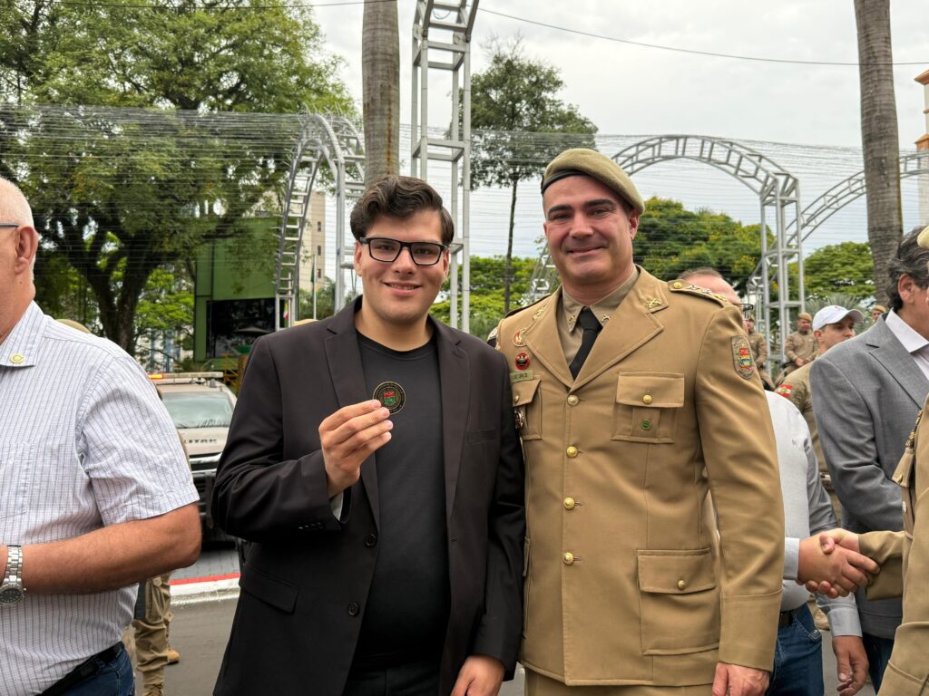 A celebração foi momento de condecorar policiais militares por tempo de serviço, de lealdade e constância, entregar medalhas comemorativas ao aniversário, medalhas do Colégio Policial Militar que inaugurou a primeira unidade no Oeste Catarinense, em Chapecó e homenagear também a comunidade com a Challenge Coin, uma moeda de reconhecimento à parceria e agradecimento pelo apoio ao trabalho em conjunto com a polícia. Entre os homenageados, o jornalista André de Lazzari e apresentador Eduardo Prado, colaboradores do Grupo Condá de Comunicação, receberam a medalha.
