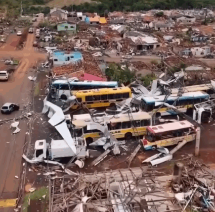 Em cada canto da cidade, o que mais se percebe é que os ventos que ultrapassaram 330 quilômetros por hora (km/h) levaram mais do que concreto. Cleiton Wieczorkovski estava fora da cidade e quando chegou em casa viu o que tinha acontecido.