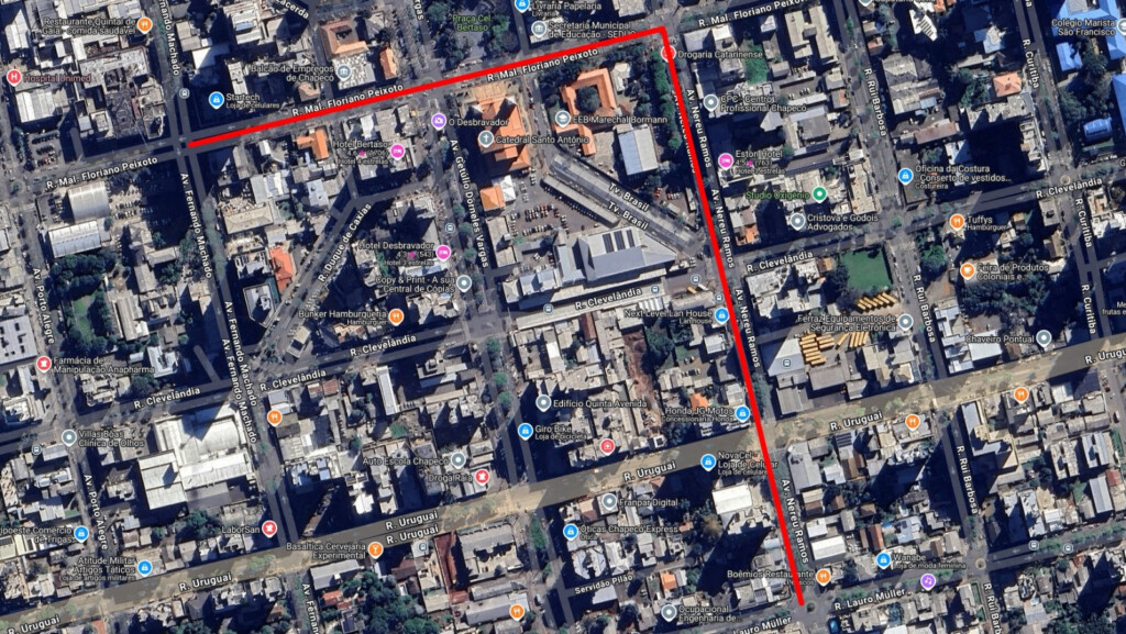 As obras acontecerão em duas vias: na margem esquerda da Avenida Nereu Ramos (esquina com a Rua Lauro Müller até a esquina com a Rua Marechal Floriano Peixoto) e na Rua Marechal Floriano Peixoto (esquina com a Avenida Nereu Ramos até a esquina com a Avenida Fernando Machado). Apesar da obra utilizar o MND e não fechar totalmente as vias, haverá tráfego de máquinas no local. A CASAN orienta os motoristas e pedestres para atenção redobrada ao trafegar na região.