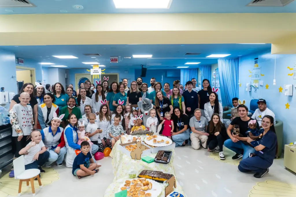 Promovida pelo Núcleo de Voluntárias Formigas do Bem – SACH, em parceria com a Associação Hospitalar Lenoir Vargas Ferreira (ALVF) e apoiadores, a iniciativa contou com apresentação musical, café da manhã especial, presença do coelhinho da Páscoa e distribuição de doces. A proposta foi proporcionar leveza à rotina hospitalar e reforçar mensagens de renovação e esperança.