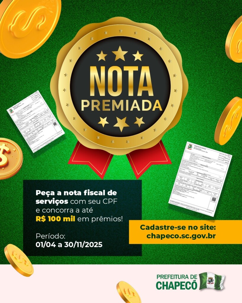 A Prefeitura de Chapecó, por meio da Secretaria de Fazenda, divulgou neste sábado (5) os 37 ganhadores da Campanha Nota Fiscal Chapecoense – Sorteio de Natal. A entrega simbólica dos cheques acontece no dia 10 de dezembro, às 19h30, durante a inauguração das luzes natalinas do Parque Edir de Marco. Os contemplados devem comparecer para fornecer as informações necessárias ao pagamento, que será efetuado posteriormente via depósito bancário.