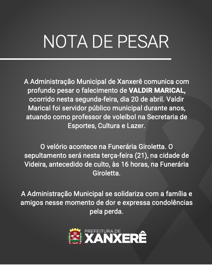 A Prefeitura de Xanxerê divulgou nota lamentando a morte e prestando solidariedade à família e amigos. A causa do falecimento não foi informada.
