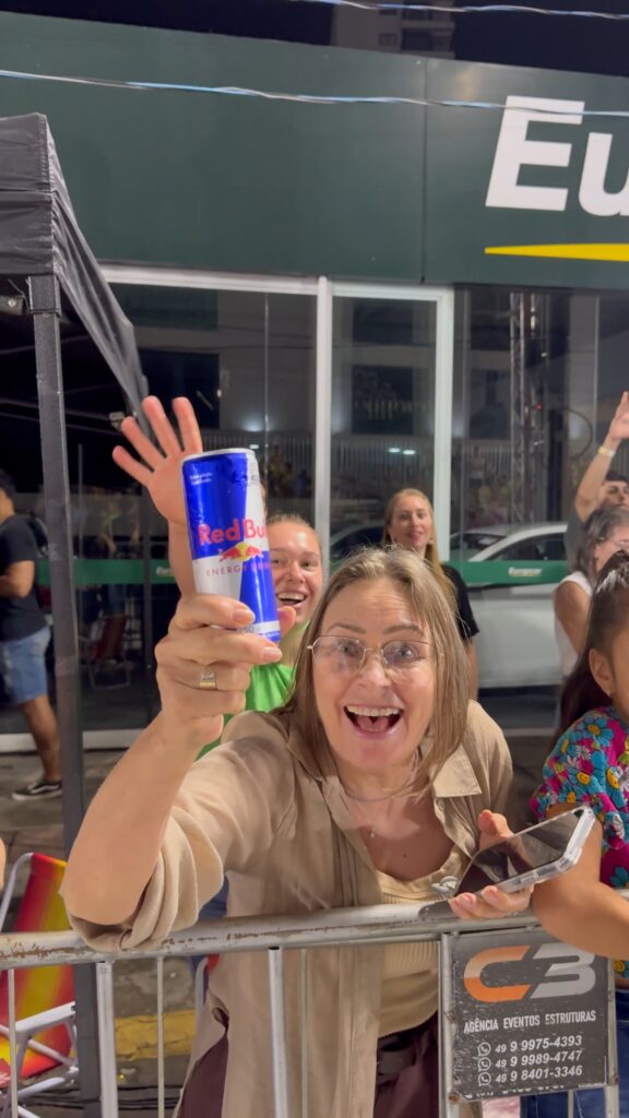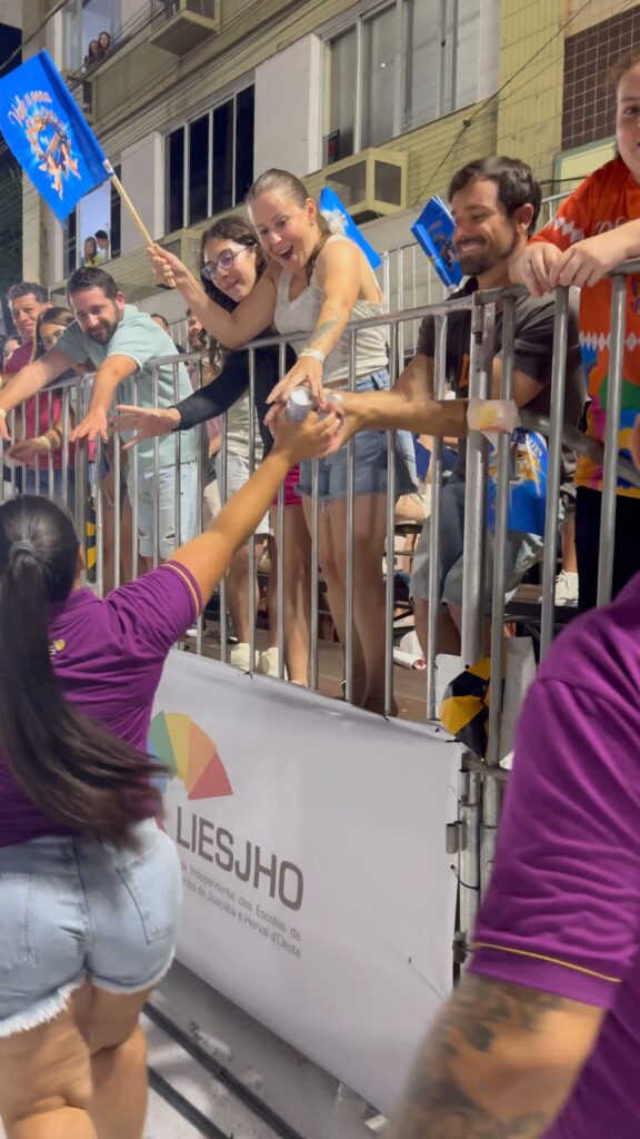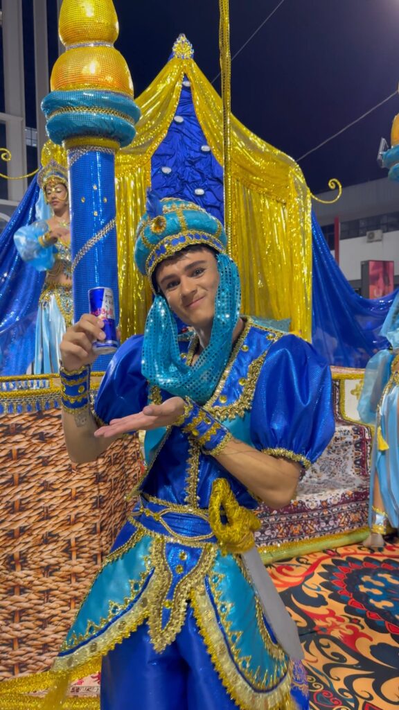 Antes da entrada oficial da escola Vale Samba, colaboradores do Superviza realizaram uma passada especial pela avenida, distribuindo chocolates e energéticos Red Bull gelados ao público, reforçando o clima de celebração e renovação que marcou o desfile.