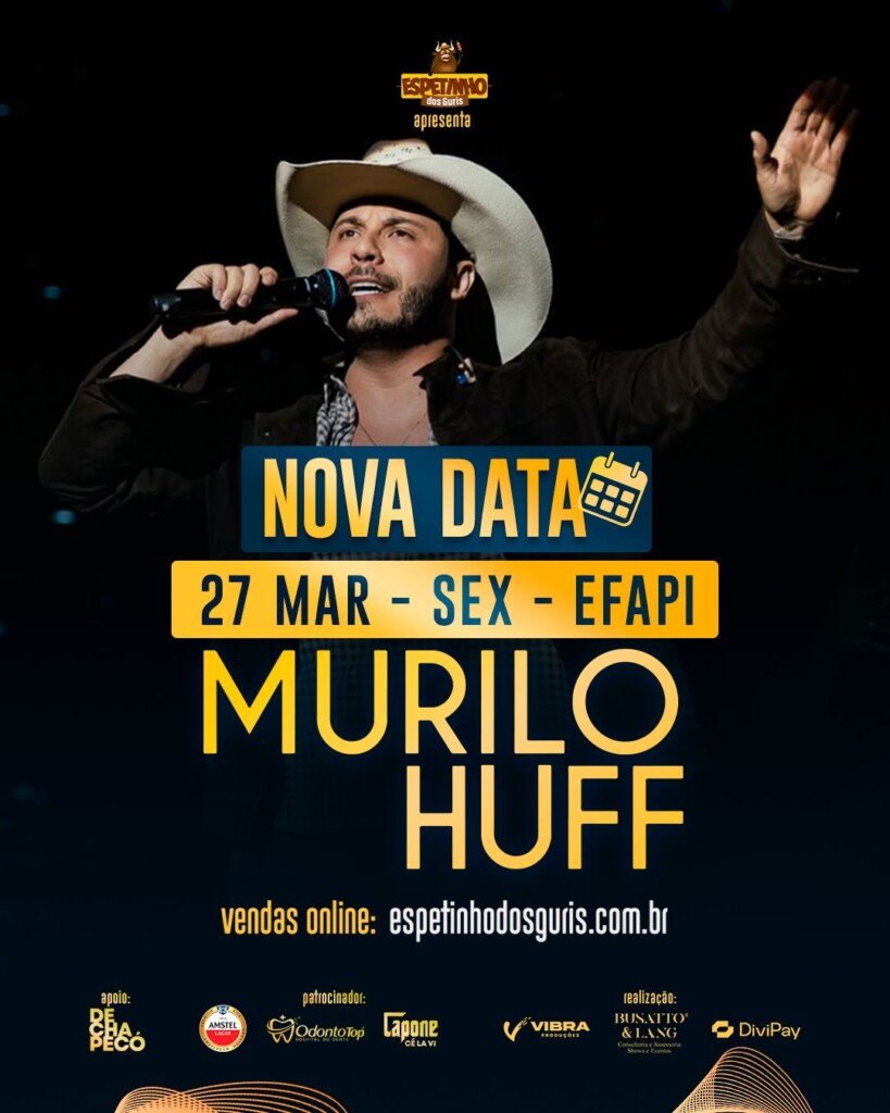 A organização do Espetinho dos Guris confirmou que o evento será realizado no dia 27 de março, no parque da Efapi, em Chapecó, com apresentação do cantor Murilo Huff. A remarcação foi feita devido à agenda e logística do artista.