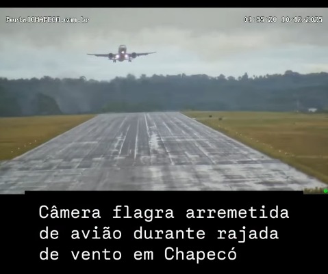 O voo TAM3278, da Latam, que partiu do Aeroporto de Guarulhos (SP) com destino a Chapecó (SC), precisou arremeter na manhã desta quarta-feira (10), às 8h35, após enfrentar fortes rajadas de vento no momento do pouso. Segundo avaliação preliminar, as rajadas atingiam cerca de 60 km/h, intensidade compatível com o avanço do ciclone extratropical que afeta o Sul do Brasil.