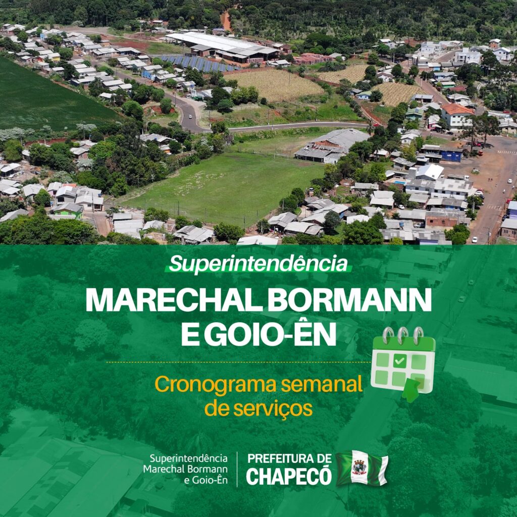 A Superintendência do Distrito de Marechal Bormann e Goio-Ên divulgou o cronograma de atividades previstas para a semana de 2 a 6 de março. As ações incluem coleta de galhos e móveis, roçadas em espaços públicos, manutenção de estradas e roteiro da coleta seletiva em diversas comunidades. Em caso de mau tempo, os serviços poderão ser cancelados e transferidos para a próxima semana.