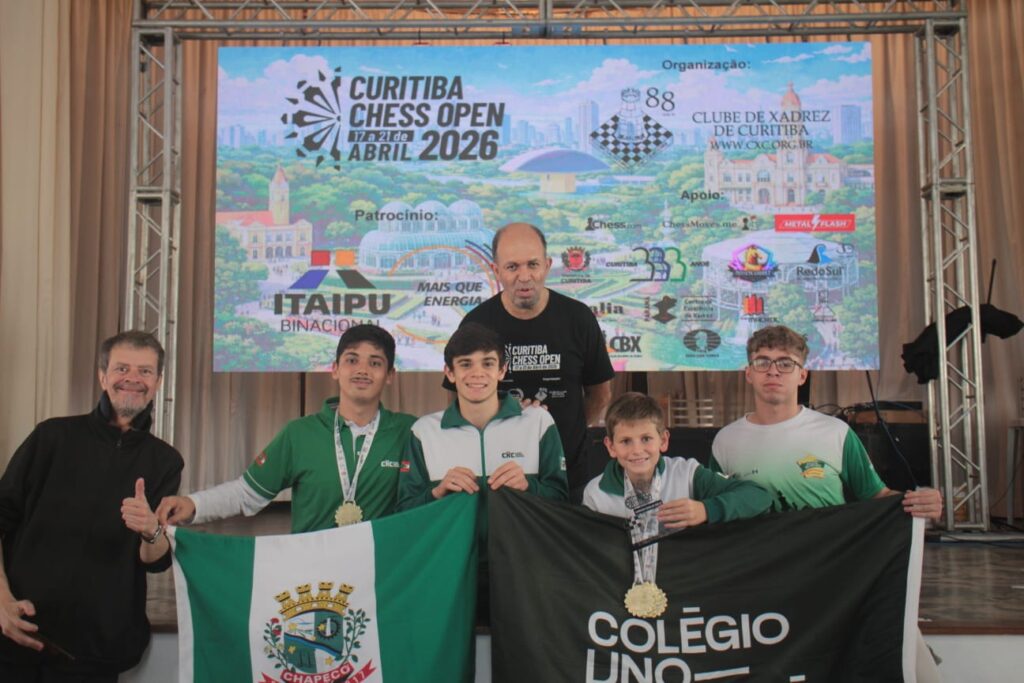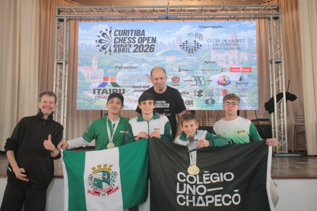 A delegação de Chapecó teve participação de destaque no Curitiba Chess Open, realizado entre os dias 18 e 21 de abril, na capital paranaense. Representando o Clube de Xadrez Chapecó (CXC), cinco atletas garantiram resultados expressivos, com destaque para conquistas de títulos e pódios em diferentes categorias.