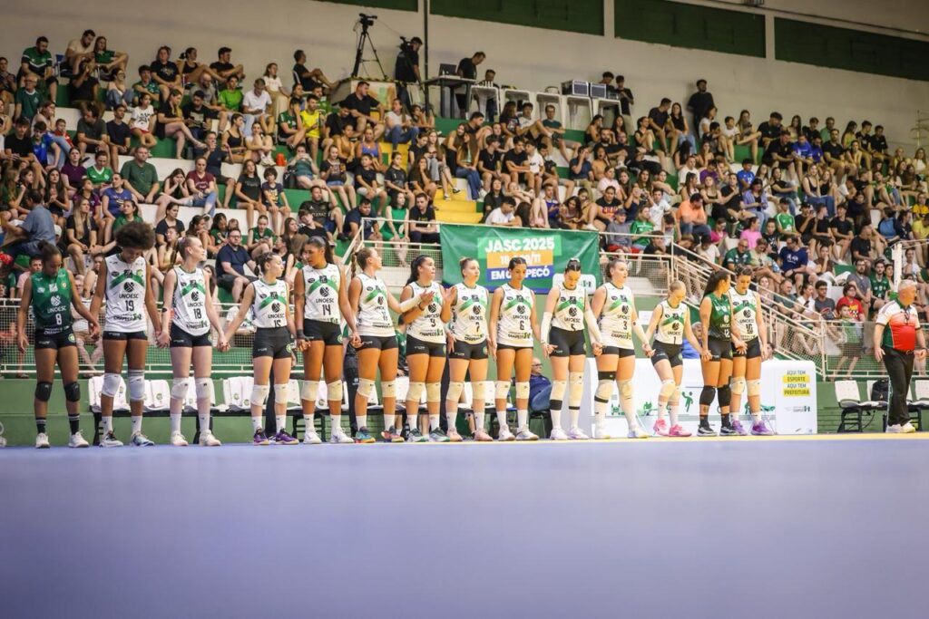 O Voleibol feminino também está na semifinal. Nesta quinta-feira, vitória por 3 sets a 0 sobre Criciúma. Amanhã, pela semifinal, enfrentam Brusque às 19h, no Ginásio Ivo Silveira.