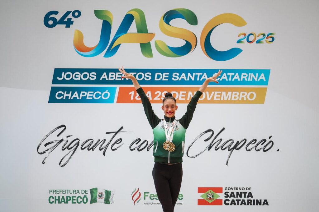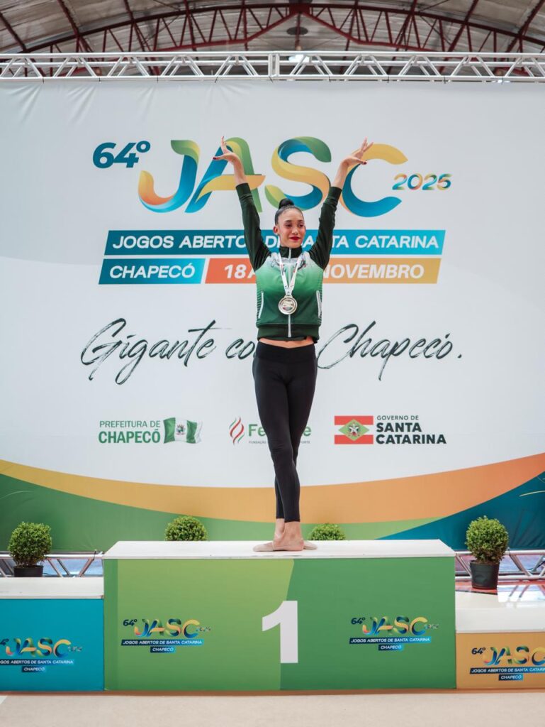 Chapecó encerrou sua participação na ginástica rítmica dos Jogos Abertos de Santa Catarina com três medalhas e o sexto lugar geral, garantindo o primeiro ponto do município na competição. As finais foram realizadas nesta sexta-feira (14), no Ginásio da SER Aurora.