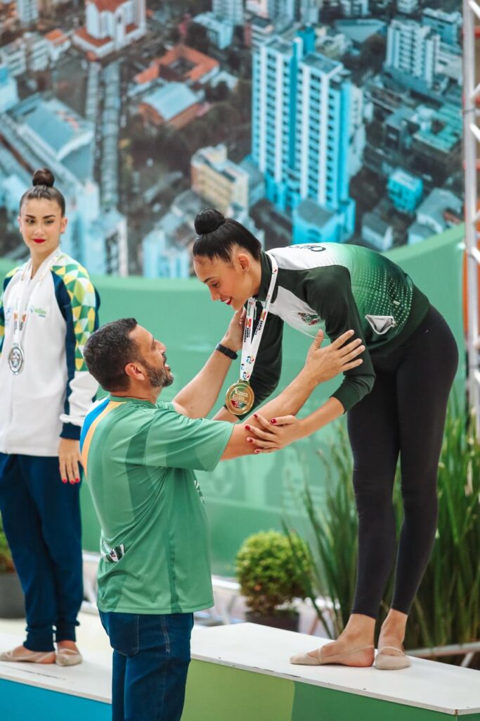 A grande protagonista do dia foi a atleta contratada Julia Castro, de Londrina (PR), que conquistou duas medalhas de ouro, nos aparelhos fita e bola, e um bronze no individual geral, resultado da soma das apresentações em bola, maças, fita e arco. Segundo ela, a estreia nos JASC foi marcante e desafiadora, mas trouxe resultados importantes e uma experiência que espera repetir no futuro.