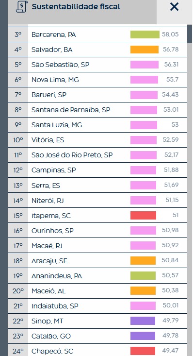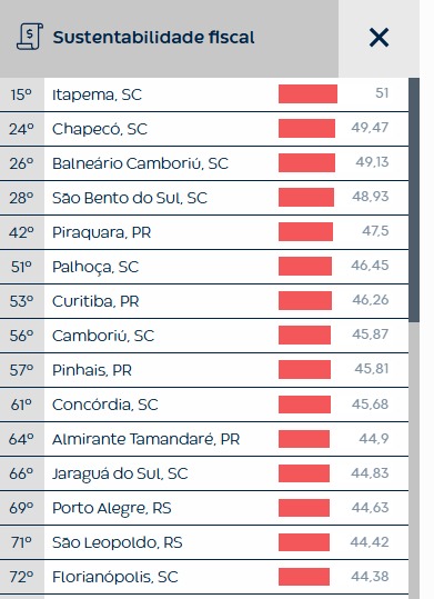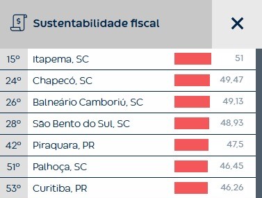 A Prefeitura de Chapecó conquistou o segundo melhor índice de sustentabilidade fiscal da Região Sul e a 24ª colocação no ranking nacional, de acordo com levantamento do Centro de Liderança Pública (CLP). Entre os municípios com mais de 100 mil habitantes, Chapecó ocupa a primeira posição no Sul do país.