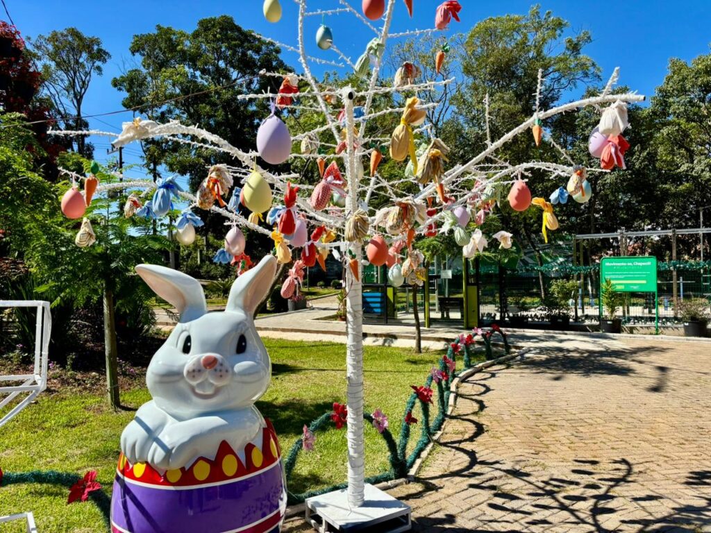 “Pela primeira vez nos últimos anos estamos com uma decoração de Páscoa. Além de ovos, coelhos e cenouras, também reaproveitamos parte da decoração natalina, como os balões. O Ecoparque está muito bonito e vale a pena visitar”, destacou.