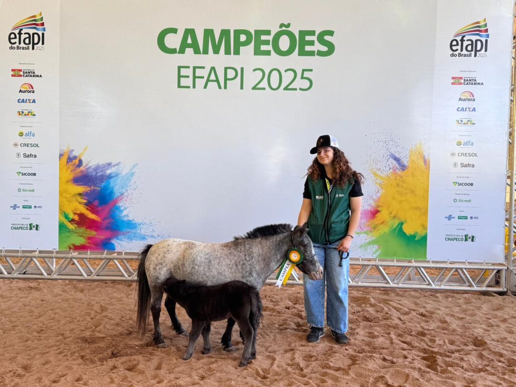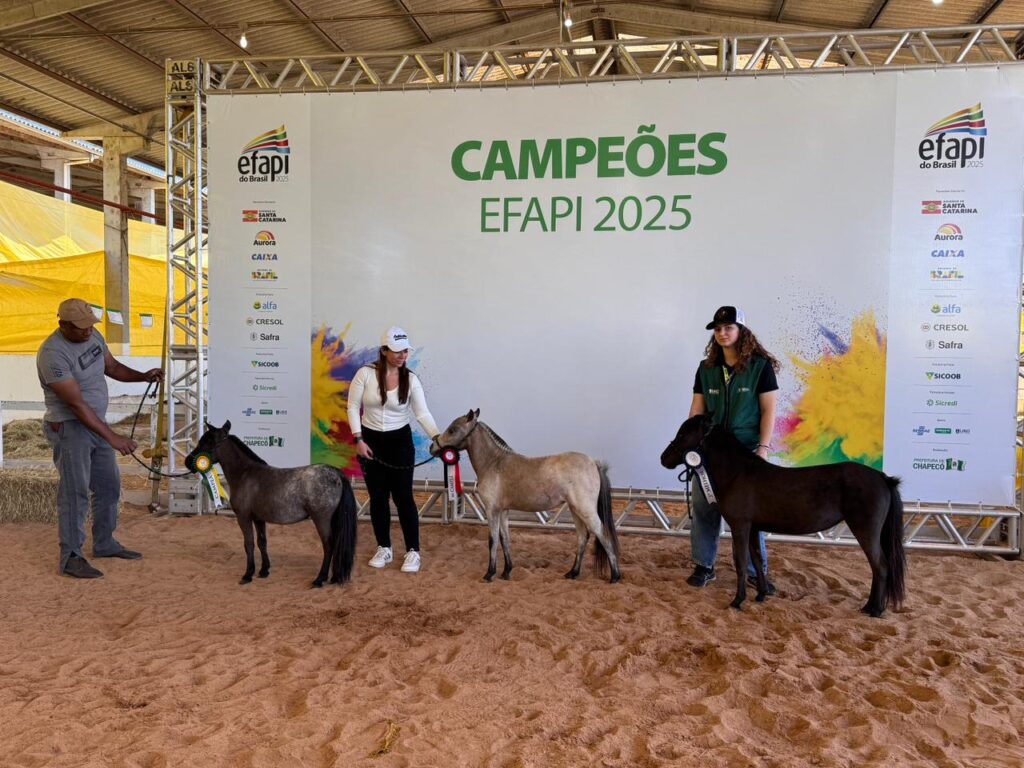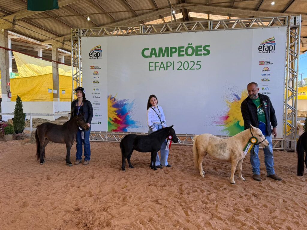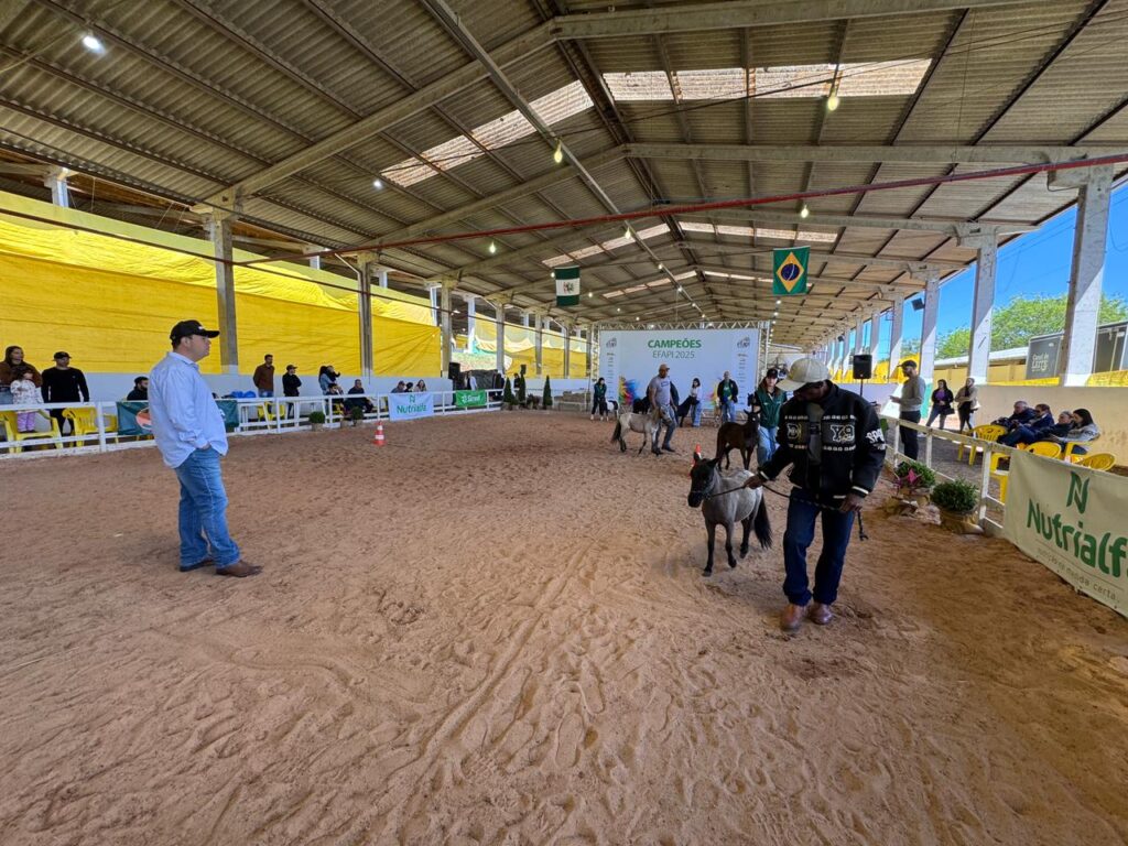 O 21º Campeonato Nacional do Mini-Horse, promovido pela Associação Brasileira dos Criadores de Mini-Horse, marcou presença pela primeira vez na Efapi do Brasil 2025, neste domingo (19), último dia da feira. A competição reuniu 12 expositores vindos principalmente de São Paulo, além de criadores do Rio Grande do Sul e Santa Catarina, que trouxeram ao todo 36 animais para a pista de julgamento.