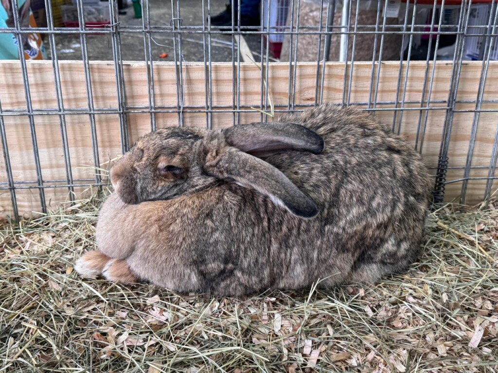 Além dos coelhos anões, o público pode conhecer também o Gigante de Flandres, uma das maiores raças de coelhos do mundo, que chega a pesar até 12 quilos. O exemplar exposto na feira não está à venda, mas foi levado especialmente para demonstrar o contraste de tamanho entre as raças.