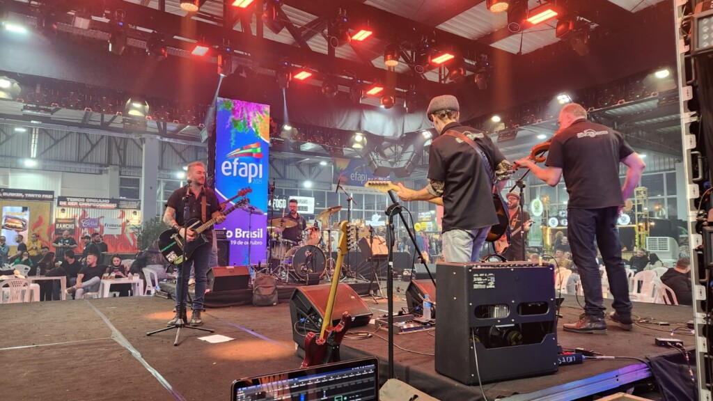 As apresentações culturais no Palco Nossa Arte estão movimentando o público nesta edição da Efapi do Brasil 2025. Com investimento de R$ 500 mil na estrutura e nos artistas, o espaço foi criado para valorizar talentos chapecoenses e oferecer experiências culturais, reunindo música, teatro, dança e outras linguagens artísticas. Entre as atrações da quinta-feira (16), estava a Banda Dazantigas, com 23 anos de história e que participa de todas as edições da feira.