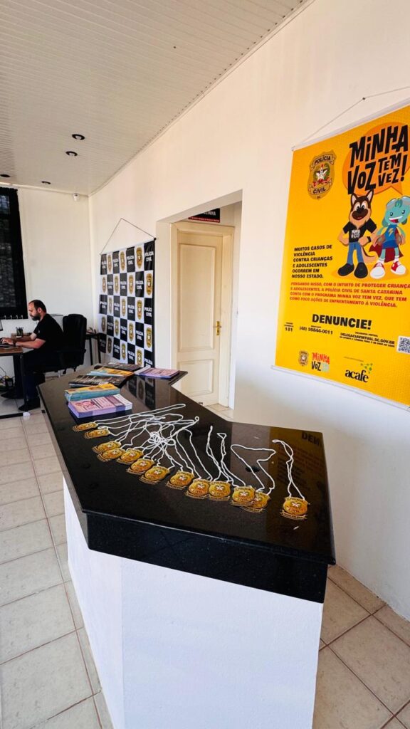 A Polícia Civil de Santa Catarina, por meio da 12ª Delegacia Regional de Chapecó, instalou uma delegacia temporária dentro do parque da EFAPI 2025, com o objetivo de prestar atendimentos imediatos, orientar o público e divulgar o trabalho da instituição durante o evento.