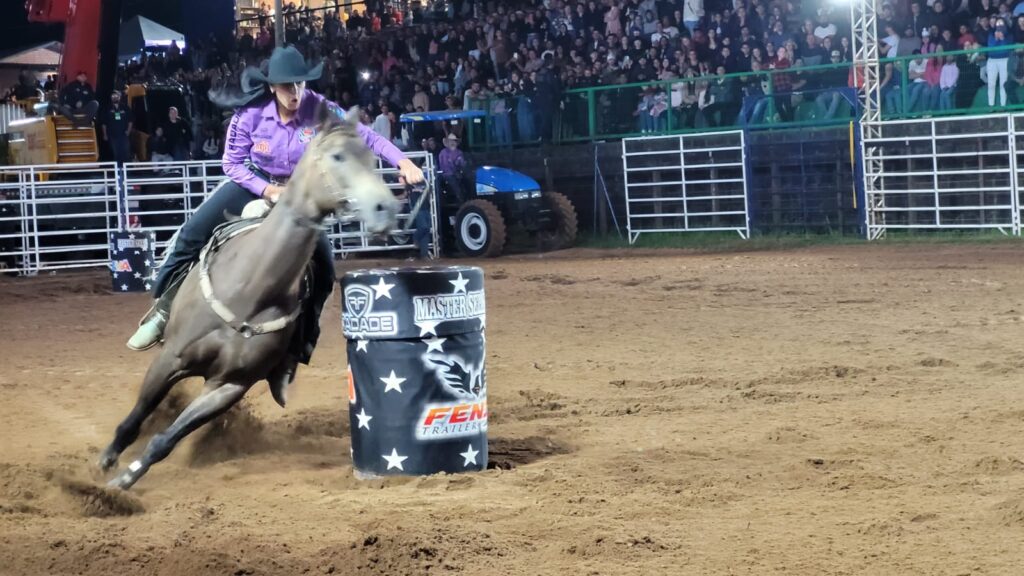 Outro destaque da última noite da Efapi do Brasil foi o Campeonato Super Stars, realizado pela primeira vez na feira. O público acompanhou de perto a tradicional prova dos três tambores, modalidade equestre feminina que une velocidade, precisão e elegância.