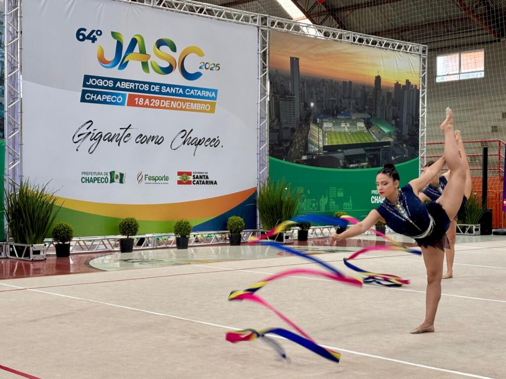 Nesta quarta-feira (12) iniciaram as competições da Ginástica Rítmica, no ginásio da SER Aurora, em Chapecó, durante Jogos Abertos de Santa Catarina (JASC). As disputas seguem até sexta-feira (14) com equipes de Balneário Camboriú, Biguaçu, Blumenau, Brusque, Chapecó, Florianópolis, Itajaí, Joinville, São José e Tubarão. Os JASC são organizados pela Fesporte e pela Prefeitura de Chapecó.