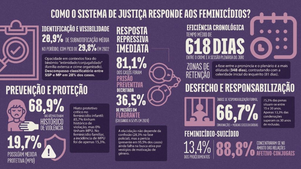 “Os protocolos internacionais mostram que o feminicídio não se limita às mortes ocorridas no âmbito familiar, mas inclui situações de violência sexual e outros contextos marcados por desigualdades de gênero. Ainda assim, essas mortes muitas vezes recebem classificações diferentes dentro do sistema de justiça, o que revela dificuldades na identificação do fenômeno em toda a sua complexidade”, comentou.