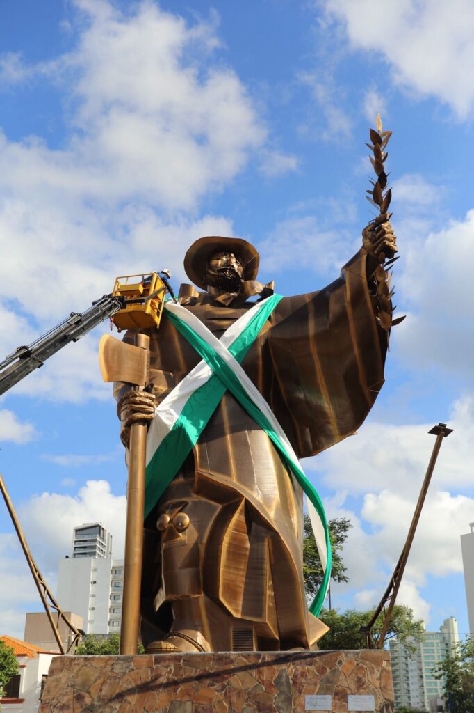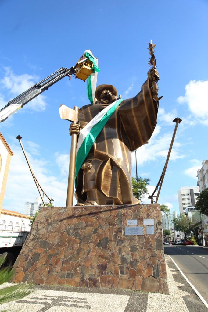 A Prefeitura de Chapecó decorou nesta terça-feira (18) o monumento O Desbravador, com faixas nas cores verde e branca. A iniciativa faz parte da campanha de mobilização da comunidade para dois grandes eventos esportivos. Um deles é a abertura dos Jogos Abertos de Santa Catarina (JASC), que será nesta quarta-feira (19), às 19h30, na Arena Condá, com show nacional do Biquíni Cavadão.