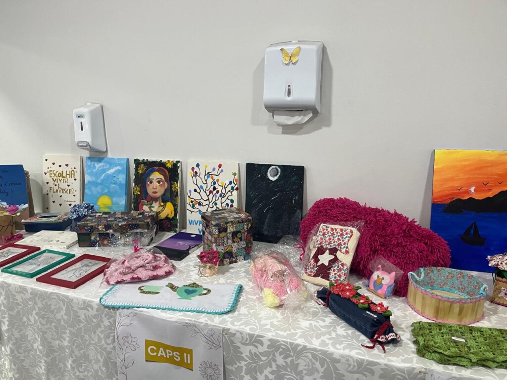 Durante o período da manhã, os participantes também puderam visitar uma exposição artística com obras produzidas nas oficinas terapêuticas dos CAPS Infantil, CAPS II Adulto e CAPS Álcool e Drogas III. O público foi convidado a participar de uma dinâmica coletiva com reflexões sobre autocuidado e saúde emocional, respondendo a perguntas como: “O que eu quero para minha saúde mental?” e “O que eu faço hoje pela minha saúde mental?”.