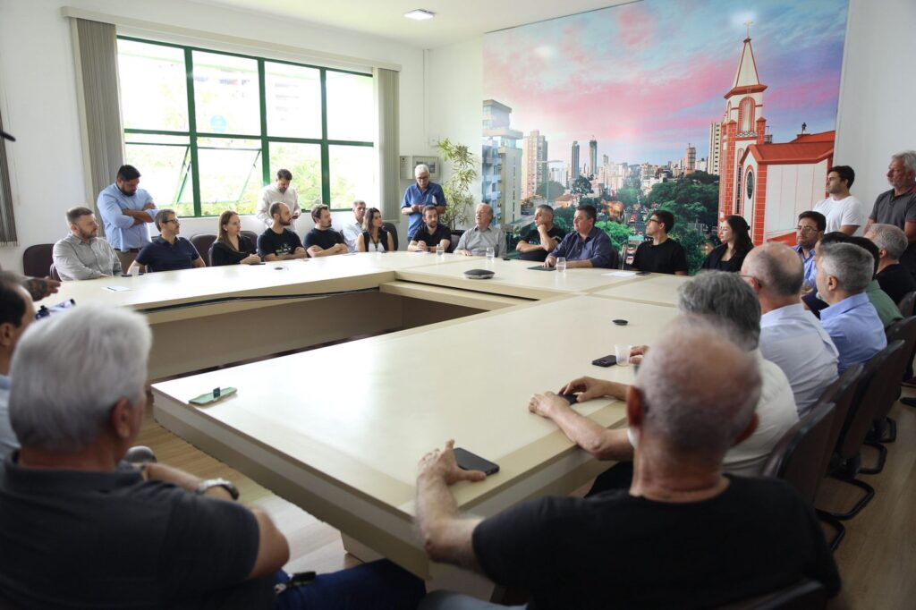 O ato de assinatura foi realizado pelo prefeito Valmor Scolari na sala de reuniões da Prefeitura, com a presença de autoridades municipais, lideranças empresariais e representantes de entidades como o DEATEC e a ACATE.