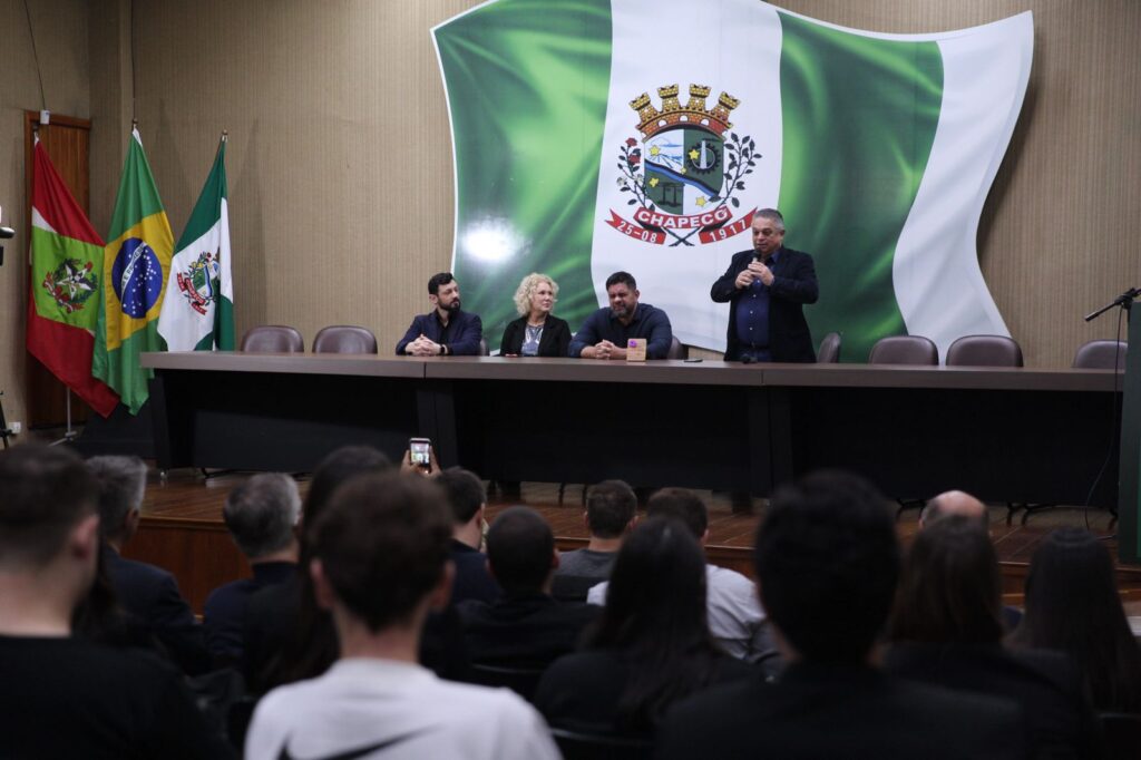 Participaram do ato, no auditório da Prefeitura, Instituições de Ensino e Pesquisa – UFFS, Sebrae, Senai, Epagri, Udesc, Senac, IFSC, Unoesc, Unochapecó, Unopar, Associações Empresariais – CEC, ACIC, Deatec, Sicom, CDL-, startups, Desbravalley, governança do ChapHub, Pollen Parque Científico e Tecnológico, empresário e representantes da comunidade.