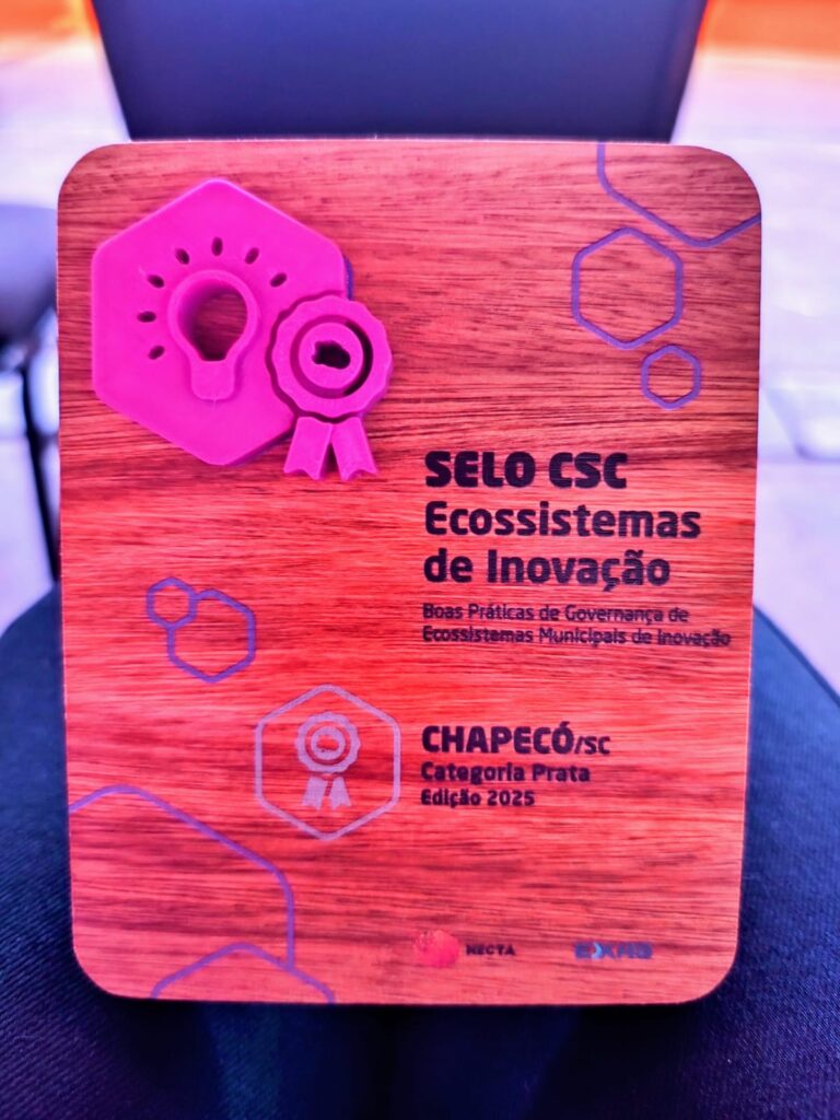A Prefeitura de Chapecó realizou na manhã desta sexta-feira (3) um evento para celebrar a conquista do Selo Prata de Ecossistema de Inovação 2025, um dos quatro troféus recebidos na semana passada, no Connected Smart Cities, em São Paulo.