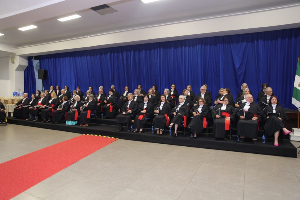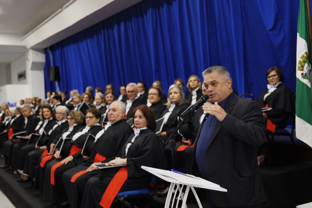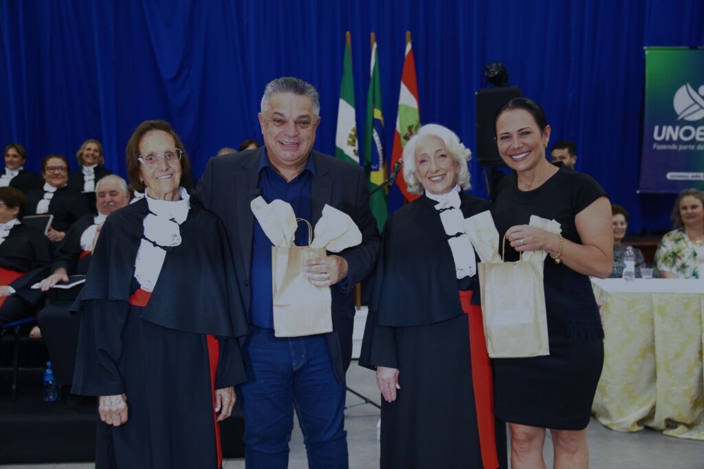 Participaram do ato o Carlos Eduardo Carvalho – Vice – Reitor da UNOESC – Campus Chapecó, Diego Beal – Diretor de Pós Graduação, Pesquisa, Extensão e Inovação da Unoesc – Campus de Chapecó e Patrono da turma; Mariluce Poerschke Vieira – Coordenadora da Universidade da Melhor Idade Chapecó – UMIC, Camilia Susana Faler – Paraninfa da Turma, o Prefeito Municipal – João Rodrigues e a primeira dama Fabiana Matte Rodrigues; Sérgio Paulo Ribeiro– Presidente e representante do Conselho Municipal dos Idosos – CMDI; Ariete Lauxen – Secretária Municipal da Família e Proteção Social e a Sueli Suttili representante da Câmara de Vereadores.