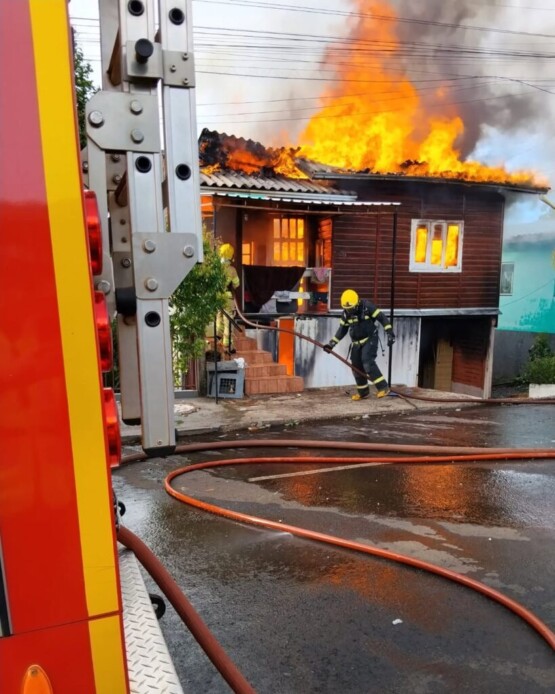 Por volta das 16h20 de quinta-feira (12), a casa da família de Noimi Weiss Floss foi destruída pelo fogo. Ficava localizada na Rua Antônio Tirondelli, no Bairro São Cristóvão em Águas de Chapecó, Oeste Catarinense. “Queimou tudo”, disse Noimi, avó dos cinco netos que moravam no andar inferior. A família está aceitando doações e recebendo ajuda.