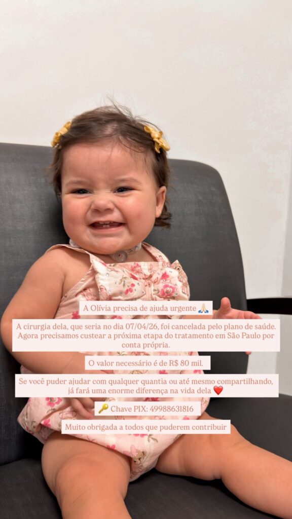 Após consultas e uma primeira intervenção realizada em São Paulo com recursos arrecadados por meio de doações, Olívia precisava passar por uma nova etapa do tratamento, inicialmente agendada para Porto Alegre.
