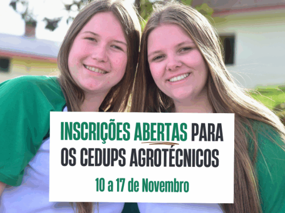 De 10 a 17 de novembro, estudantes interessados em cursar ensino médio integrado ao curso técnico em Agropecuária podem se inscrever para o processo seletivo de ingresso nos Centros de Educação Profissional Agrotécnicos (Cedups), para o ano letivo de 2026. As inscrições são gratuitas e devem ser feitas online na página da Epagri, preenchendo o formulário eletrônico e anexando a documentação exigida no edital.